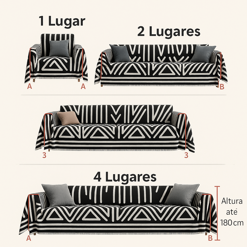 O encaixe é prático, cobrindo assento, encosto e braços (dependendo do tamanho), deixando o sofá com aparência de novo. Ideal para casas com cães, gatos e crianças, e para quem busca uma solução imediata sem gastar com reformas ou higienizações frequentes.